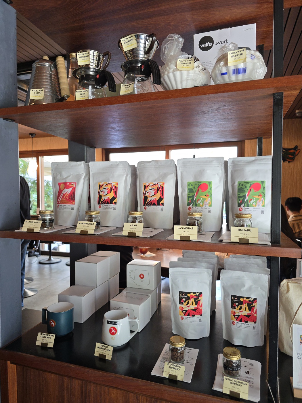 원두도 팔고, 머그컵, 에코백, 드리퍼, 커피필터 등 여러 굿즈도 팔고 있다.