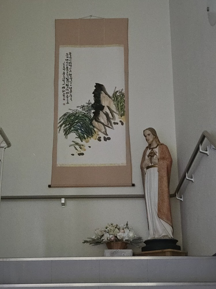 한국화가 그려진 족자와 성모 마리아상 ㅎㅎ