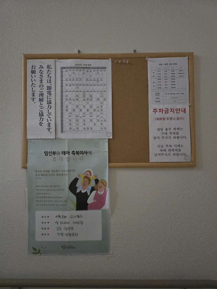 도쿄 한인 성당의 미사 및 성무 시간 안내문도 찍어왔으니 참고를...